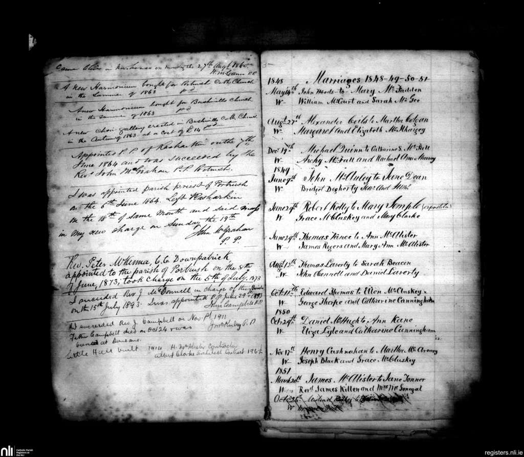 Portrush; County of Antrim; Diocese of Down and Connor. Marriages, May 1848 to Oct. 1851