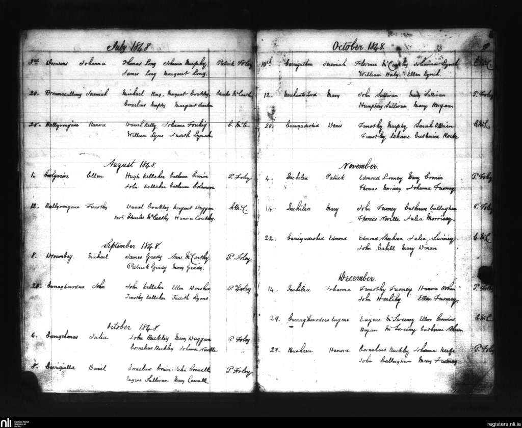 Aghinagh; County of Cork; Diocese of Cloyne. Baptisms, July 1848 to Dec. 1848