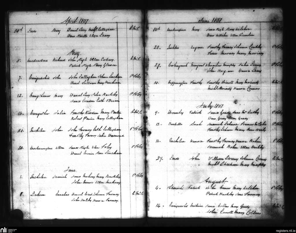 Aghinagh; County of Cork; Diocese of Cloyne. Baptisms, Apr. 1851 to Aug. 1851