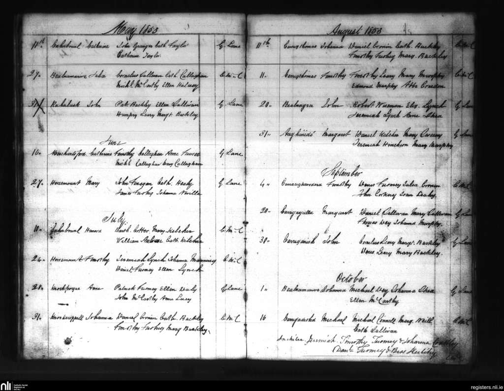 Aghinagh; County of Cork; Diocese of Cloyne. Baptisms, May 1853 to Oct. 1853