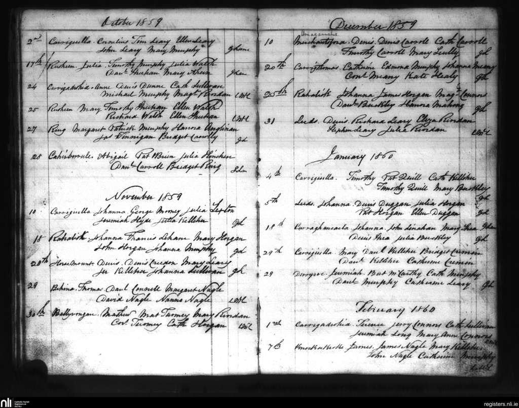Aghinagh; County of Cork; Diocese of Cloyne. Baptisms, Oct. 1859 to Feb. 1860
