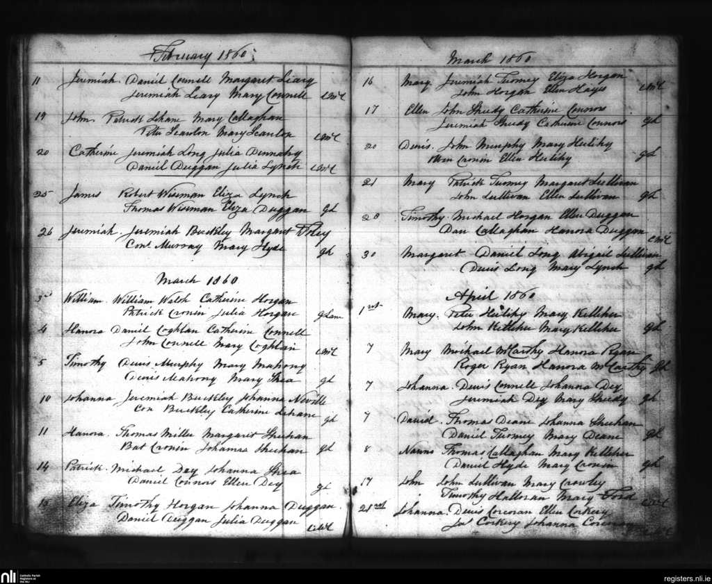 Aghinagh; County of Cork; Diocese of Cloyne. Baptisms, Feb. 1860 to Apr. 1860