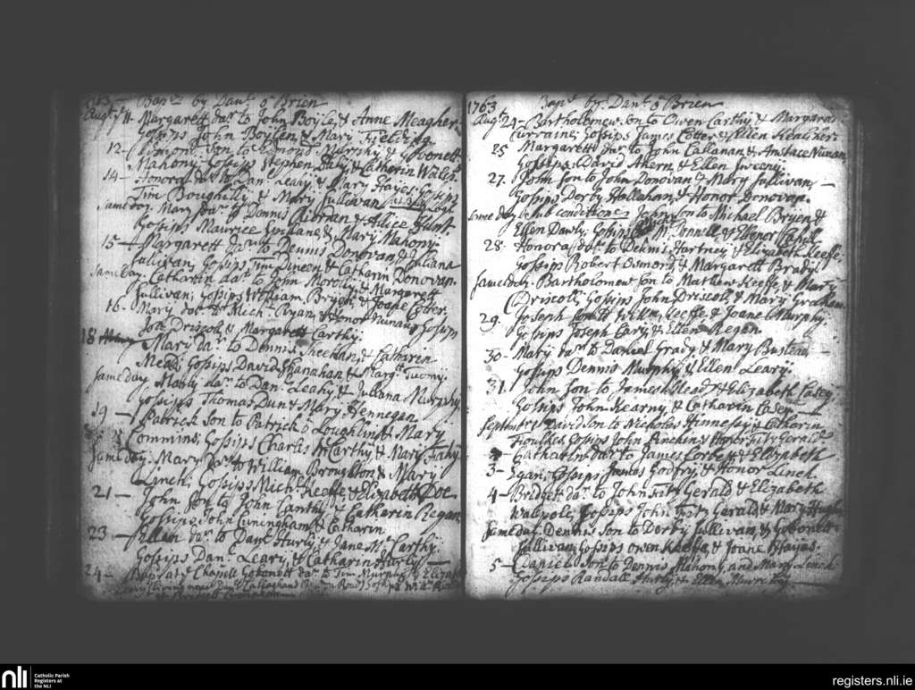 St. Finbarr's, Cork city; County of Cork; Diocese of Cork and Ross. Baptisms, Aug. 1763 to Sep. 1763