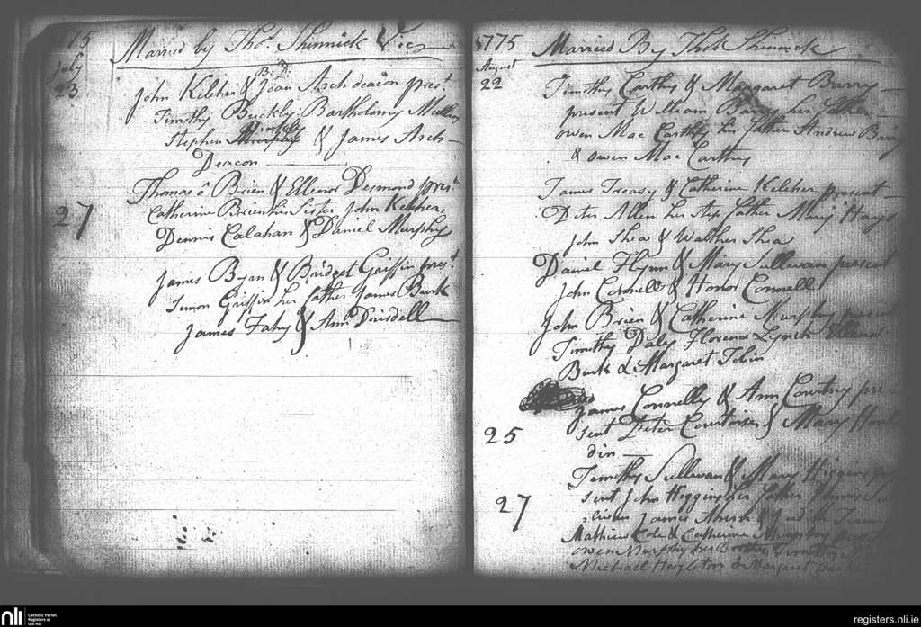 St. Finbarr's, Cork city; County of Cork; Diocese of Cork and Ross. Marriages, July 1775 to Aug. 1775