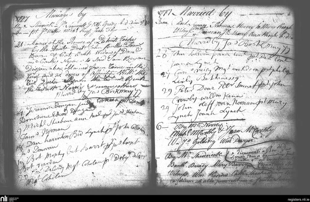 St. Finbarr's, Cork city; County of Cork; Diocese of Cork and Ross. Marriages, May 1777 to June 1777