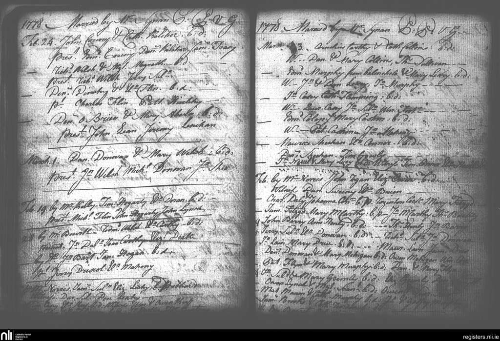 St. Finbarr's, Cork city; County of Cork; Diocese of Cork and Ross. Marriages, Feb. 1778 to Mar. 1778