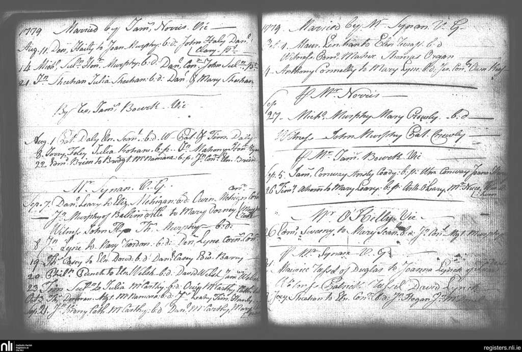 St. Finbarr's, Cork city; County of Cork; Diocese of Cork and Ross. Marriages, Aug. 1779 to Oct. 1779