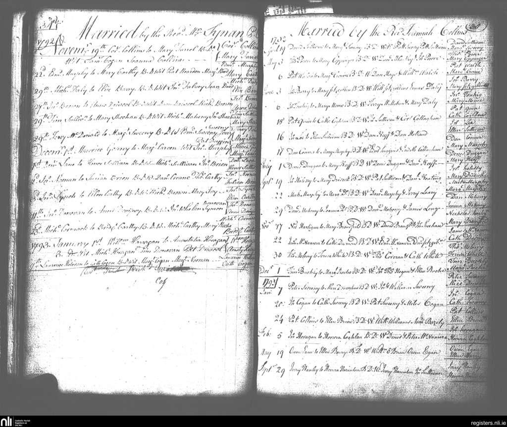St. Finbarr's, Cork city; County of Cork; Diocese of Cork and Ross. Marriages, Apr. 1792 to Sep. 1793