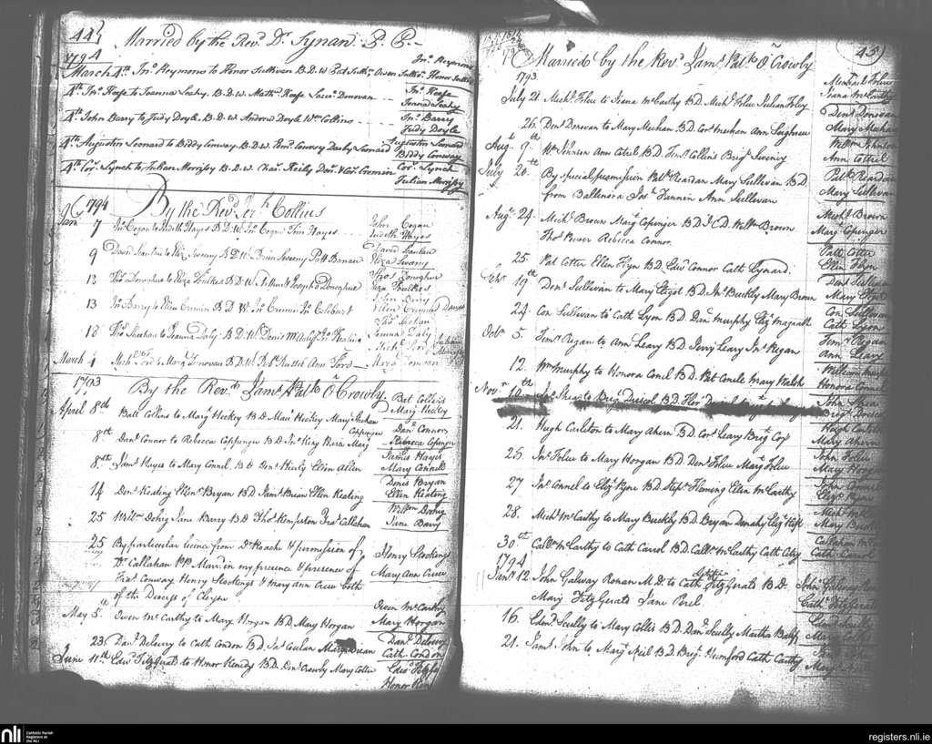 St. Finbarr's, Cork city; County of Cork; Diocese of Cork and Ross. Marriages, Apr. 1793 to Mar. 1794