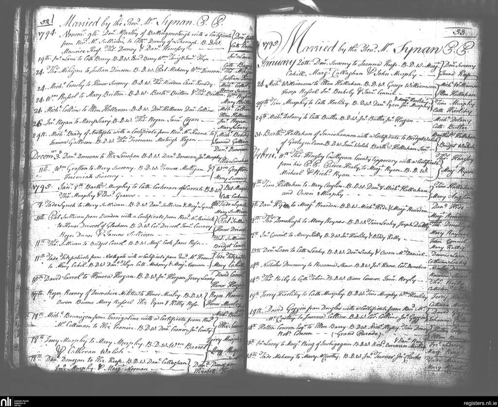 St. Finbarr's, Cork city; County of Cork; Diocese of Cork and Ross. Marriages, Nov. 1794 to Feb. 1795