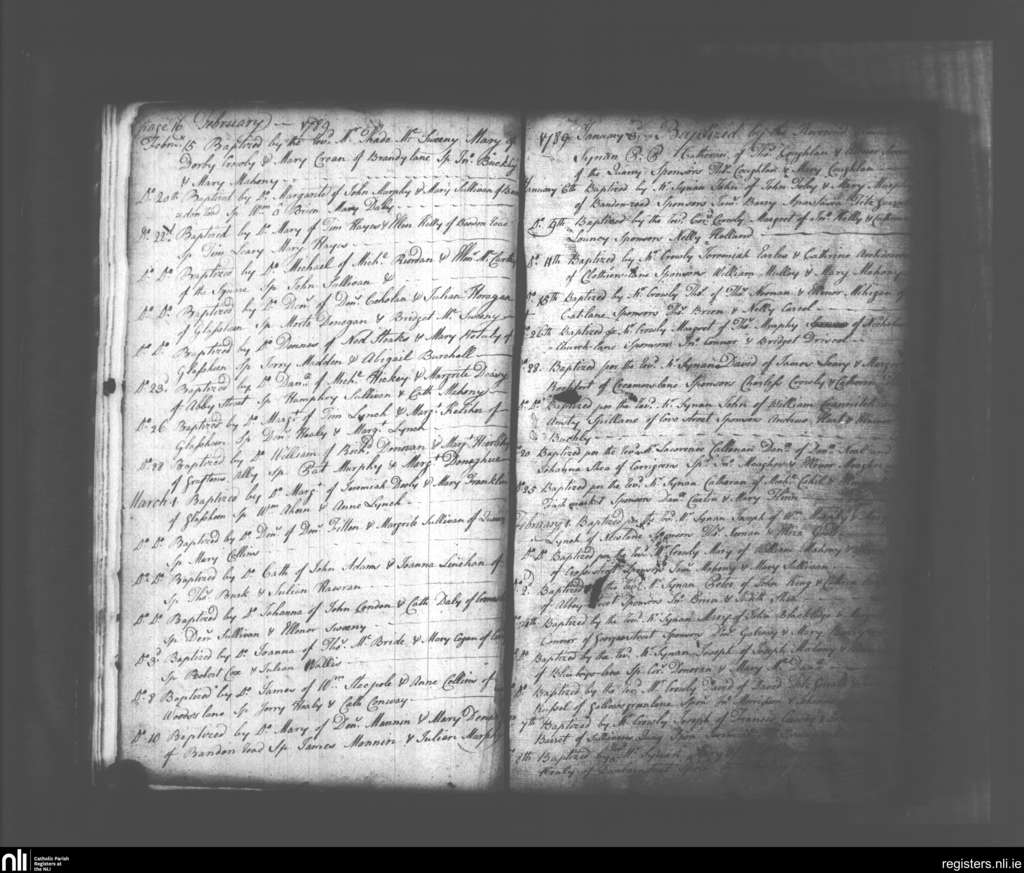 St. Finbarr's, Cork city; County of Cork; Diocese of Cork and Ross. Baptisms, Jan. 1789 to Mar. 1789