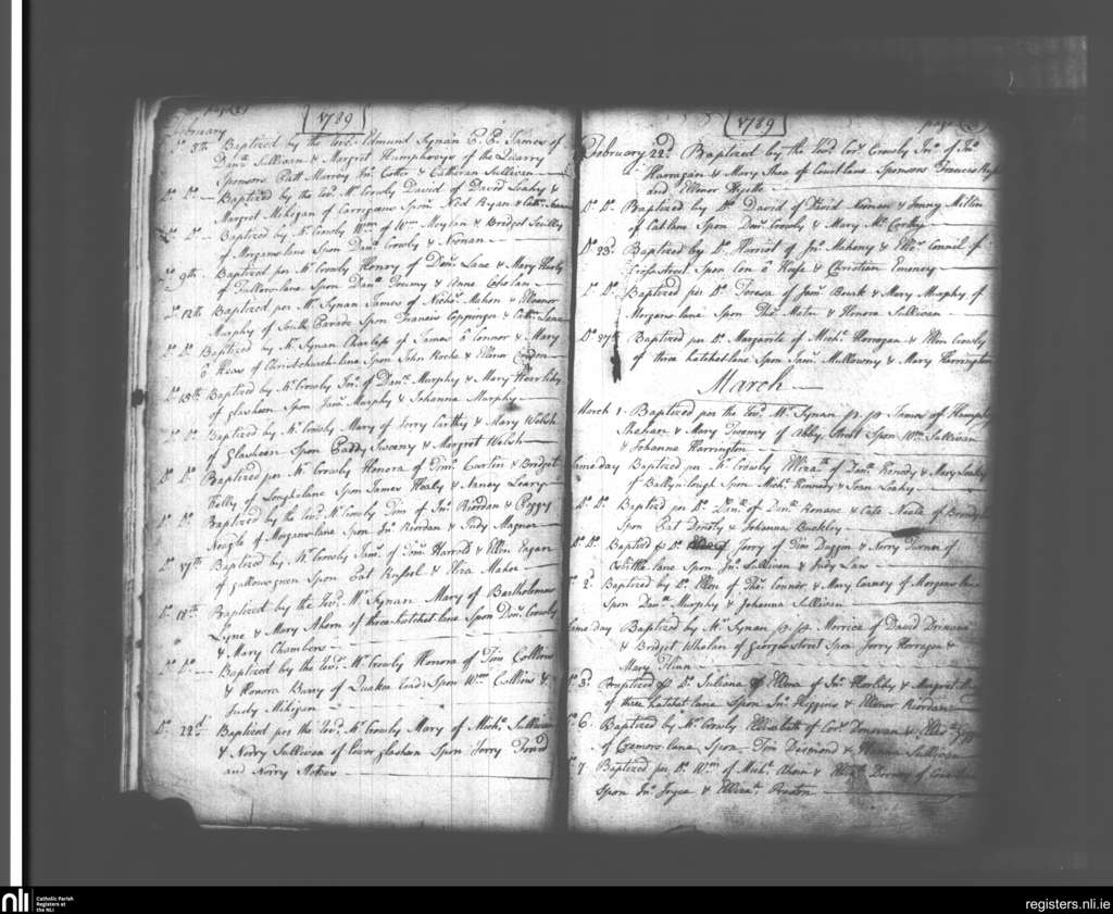 St. Finbarr's, Cork city; County of Cork; Diocese of Cork and Ross. Baptisms, Feb. 1789 to Mar. 1789