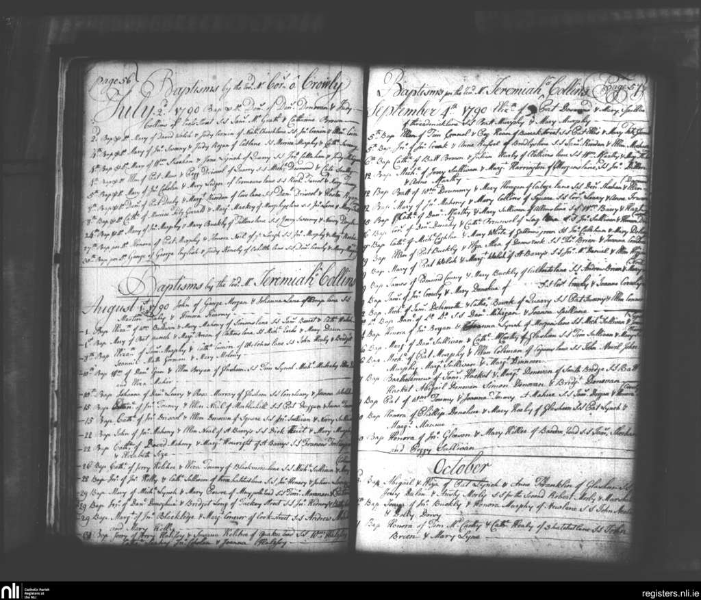 St. Finbarr's, Cork city; County of Cork; Diocese of Cork and Ross. Baptisms, July 1790 to Oct. 1790