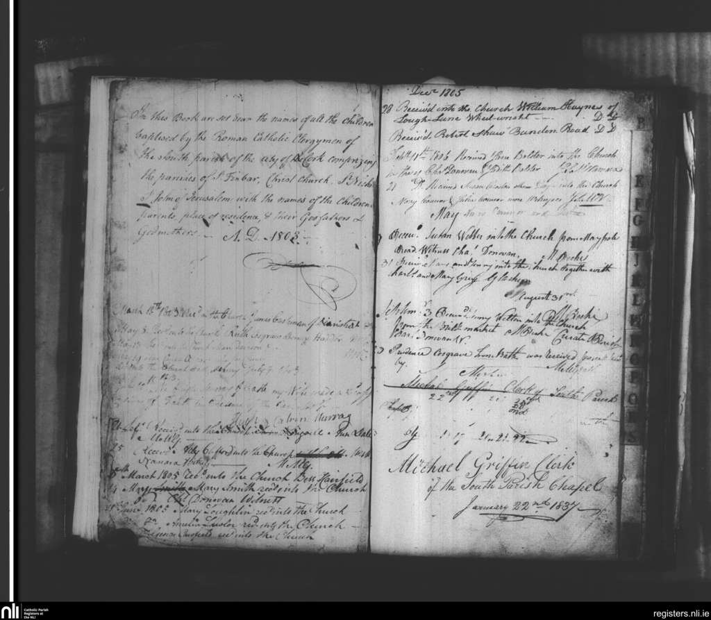 St. Finbarr's, Cork city; County of Cork; Diocese of Cork and Ross. Baptisms