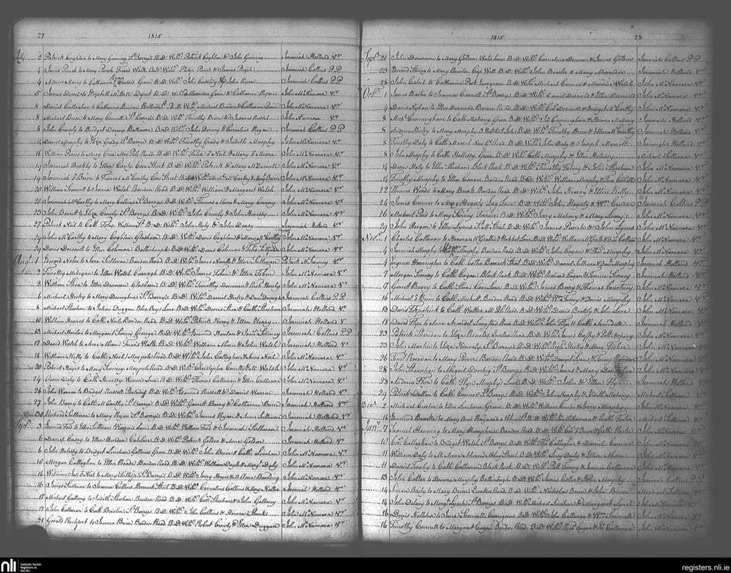 St. Finbarr's, Cork city; County of Cork; Diocese of Cork and Ross. Marriages, July 1815 to Jan. 1816