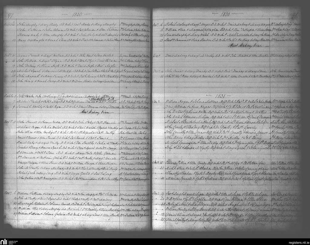 St. Finbarr's, Cork city; County of Cork; Diocese of Cork and Ross. Marriages, Oct. 1830 to Jan. 1831