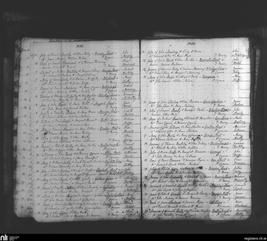 St. Finbarr's, Cork city; County of Cork; Diocese of Cork and Ross. Baptisms, July 1810