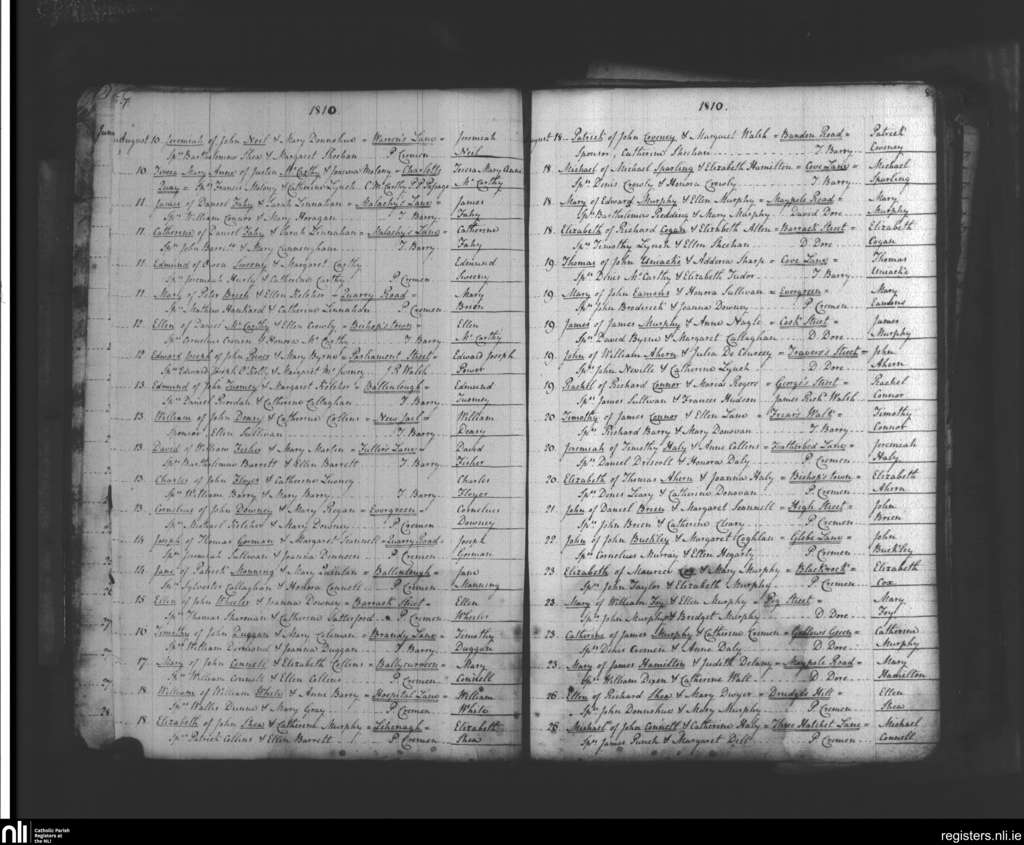 St. Finbarr's, Cork city; County of Cork; Diocese of Cork and Ross. Baptisms, Aug. 1810
