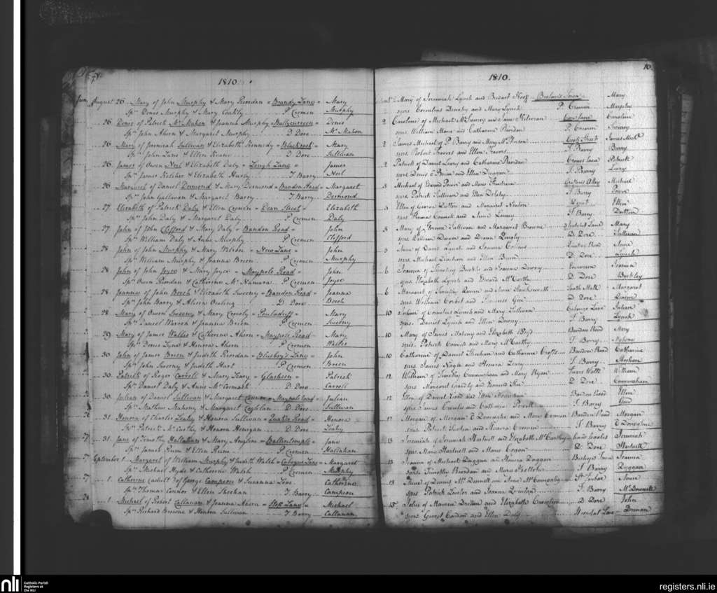 St. Finbarr's, Cork city; County of Cork; Diocese of Cork and Ross. Baptisms, Aug. 1810 to Sep. 1810