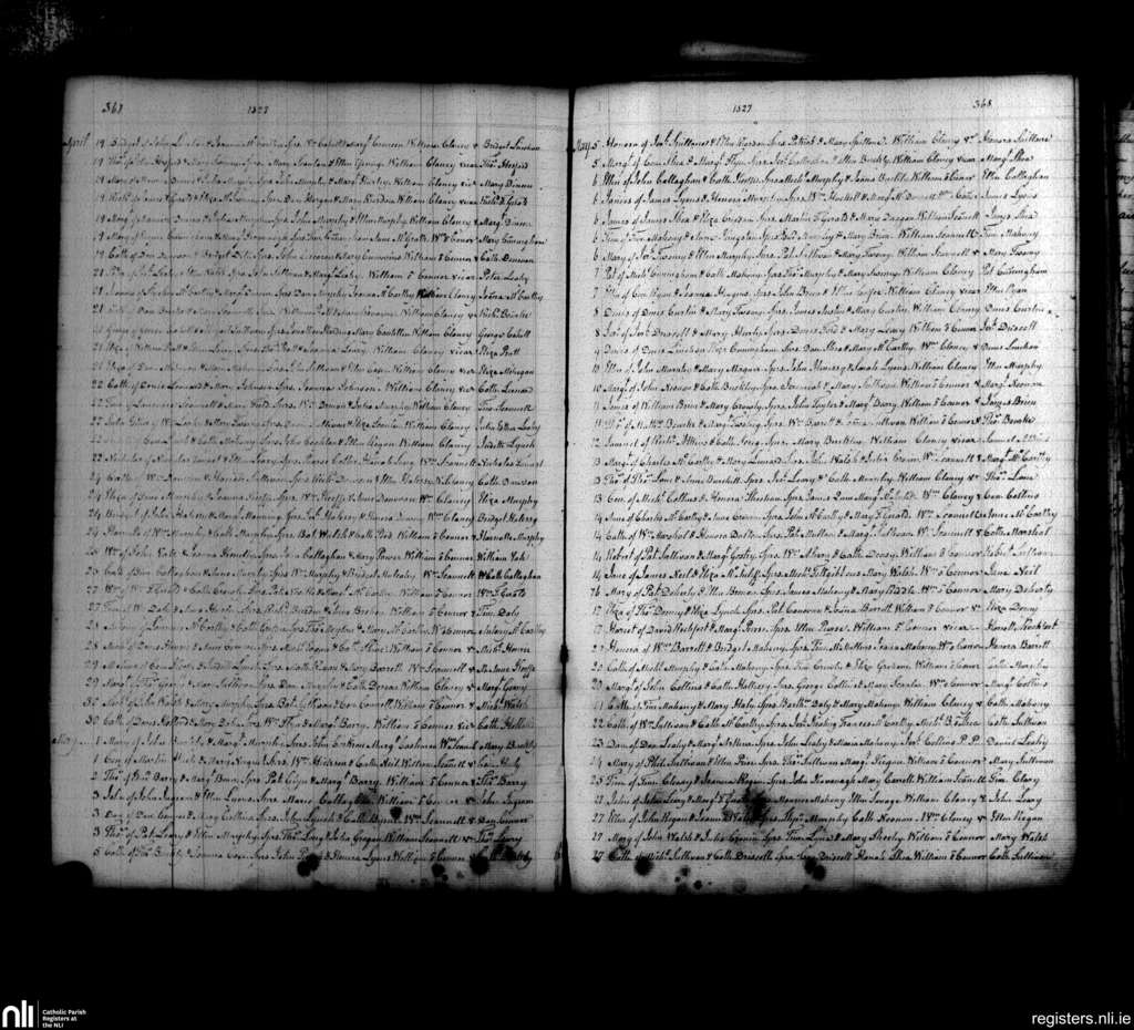 St. Finbarr's, Cork city; County of Cork; Diocese of Cork and Ross. Baptisms, Apr. 1827 to May 1827