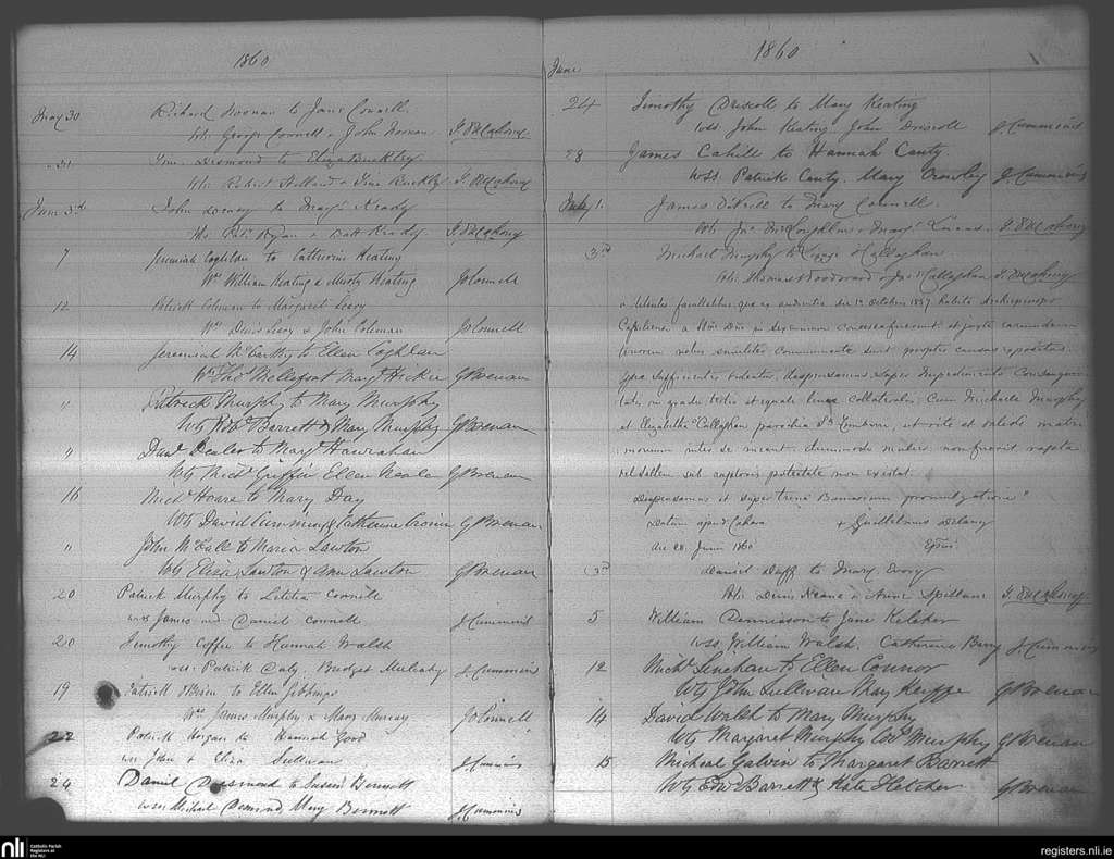 St. Finbarr's, Cork city; County of Cork; Diocese of Cork and Ross. Marriages, May 1860 to July 1860