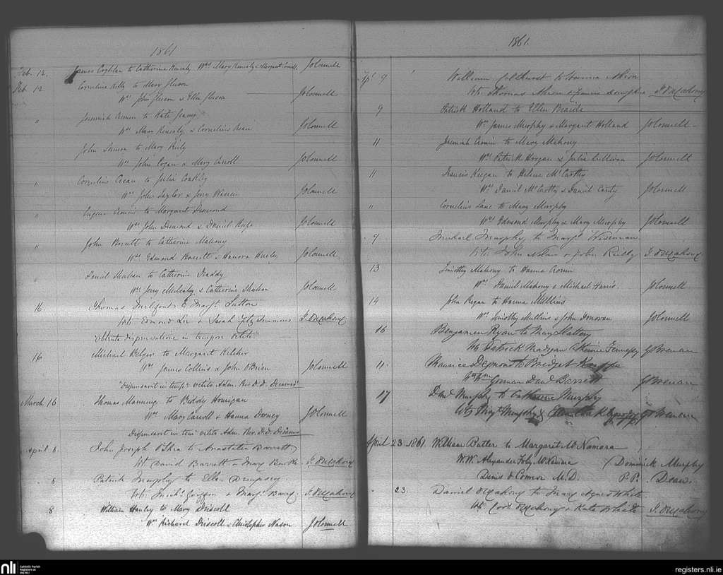 St. Finbarr's, Cork city; County of Cork; Diocese of Cork and Ross. Marriages, Feb. 1861 to Apr. 1861