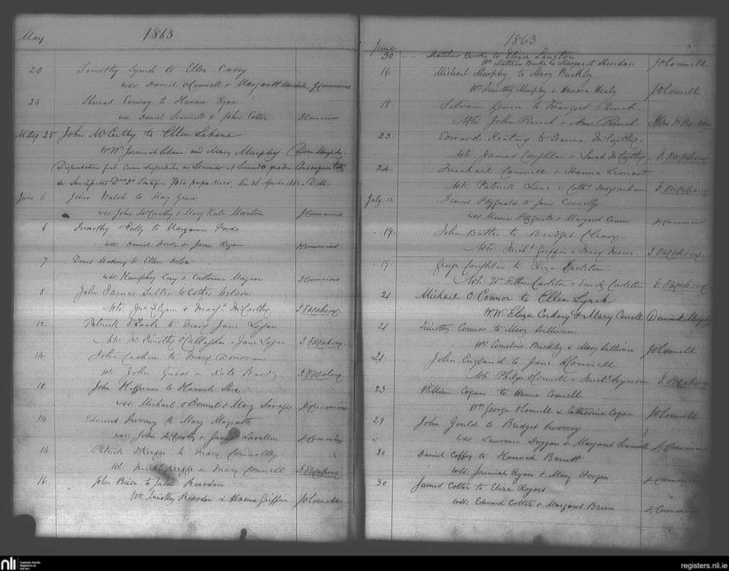 St. Finbarr's, Cork city; County of Cork; Diocese of Cork and Ross. Marriages, May 1863 to July 1863