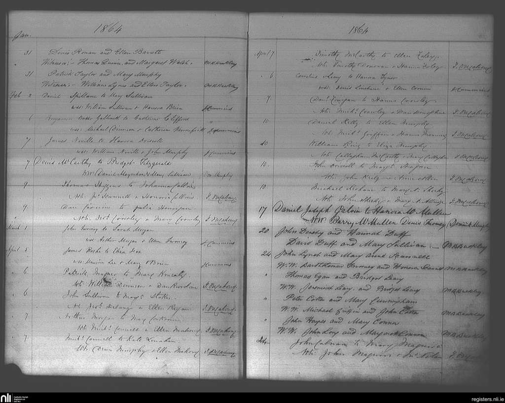 St. Finbarr's, Cork city; County of Cork; Diocese of Cork and Ross. Marriages, Jan. 1864 to Apr. 1864