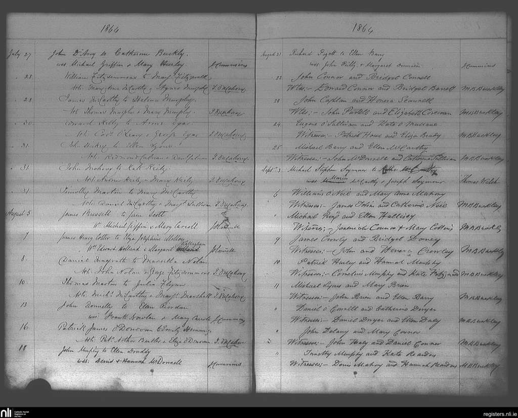 St. Finbarr's, Cork city; County of Cork; Diocese of Cork and Ross. Marriages, July 1864 to Sep. 1864