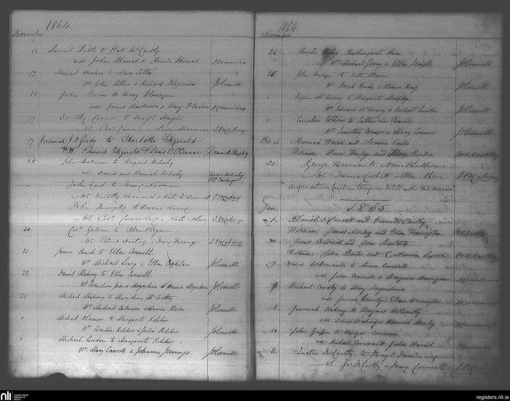 St. Finbarr's, Cork city; County of Cork; Diocese of Cork and Ross. Marriages, Nov. 1864 to Jan. 1865