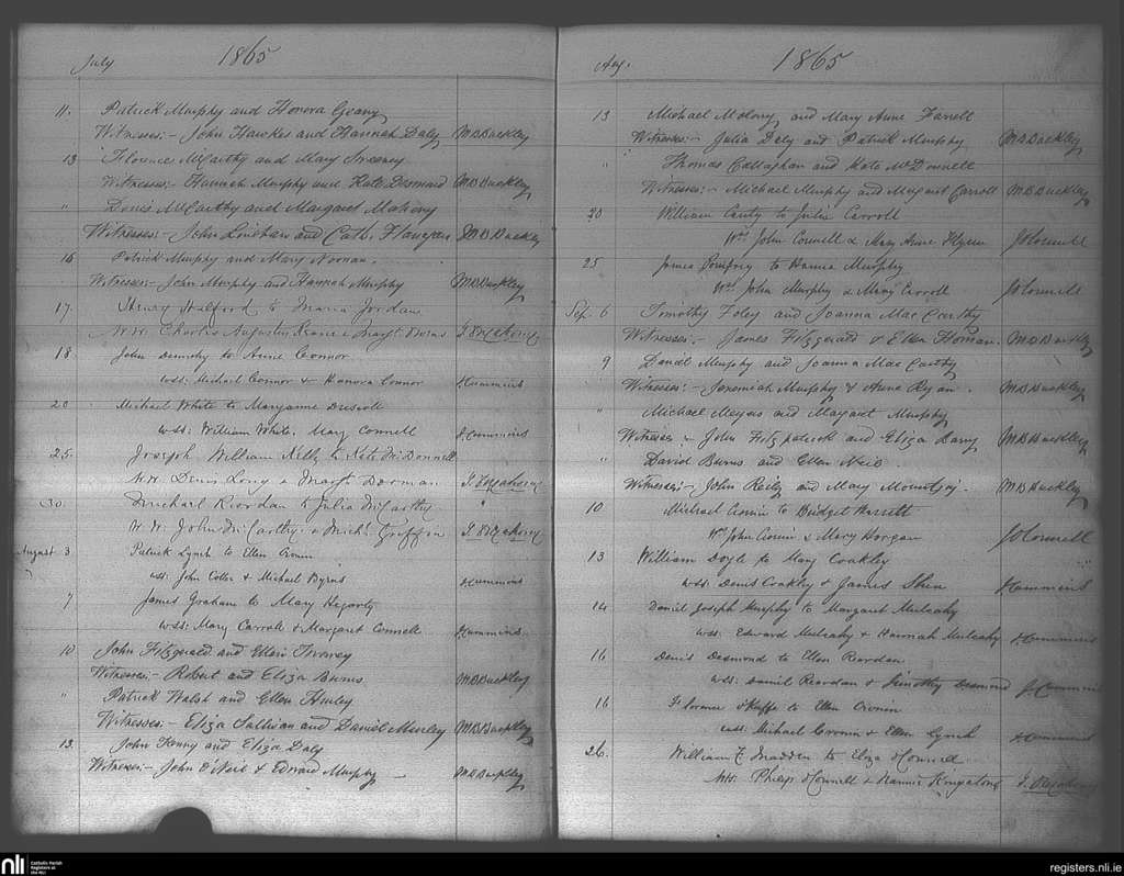 St. Finbarr's, Cork city; County of Cork; Diocese of Cork and Ross. Marriages, July 1865 to Sep. 1865