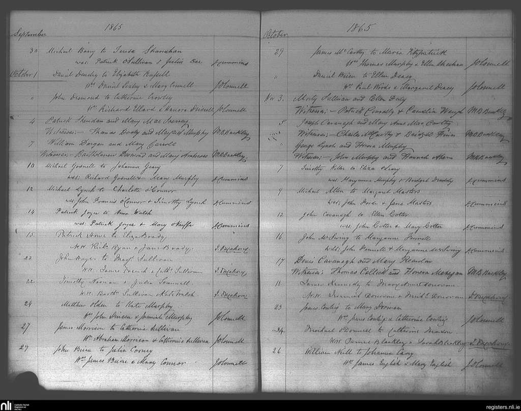 St. Finbarr's, Cork city; County of Cork; Diocese of Cork and Ross. Marriages, Sep. 1865 to Nov. 1865