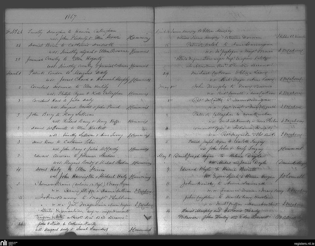 St. Finbarr's, Cork city; County of Cork; Diocese of Cork and Ross. Marriages, Feb. 1867 to May 1867