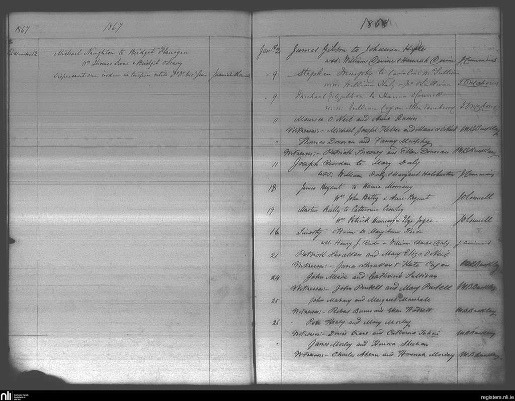 St. Finbarr's, Cork city; County of Cork; Diocese of Cork and Ross. Marriages, Dec. 1867 to Jan. 1868