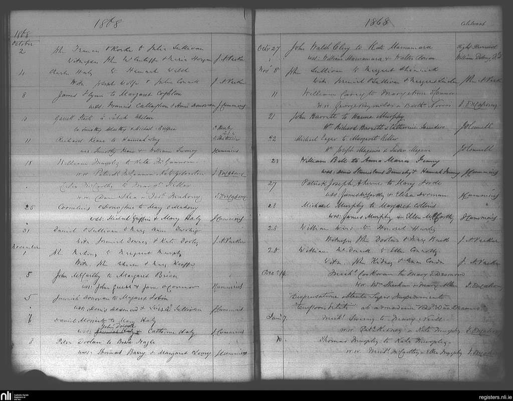 St. Finbarr's, Cork city; County of Cork; Diocese of Cork and Ross. Marriages, Oct. 1868 to Jan. 1869
