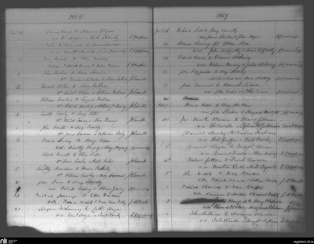 St. Finbarr's, Cork city; County of Cork; Diocese of Cork and Ross. Marriages, Jan. 1869 to Feb. 1869