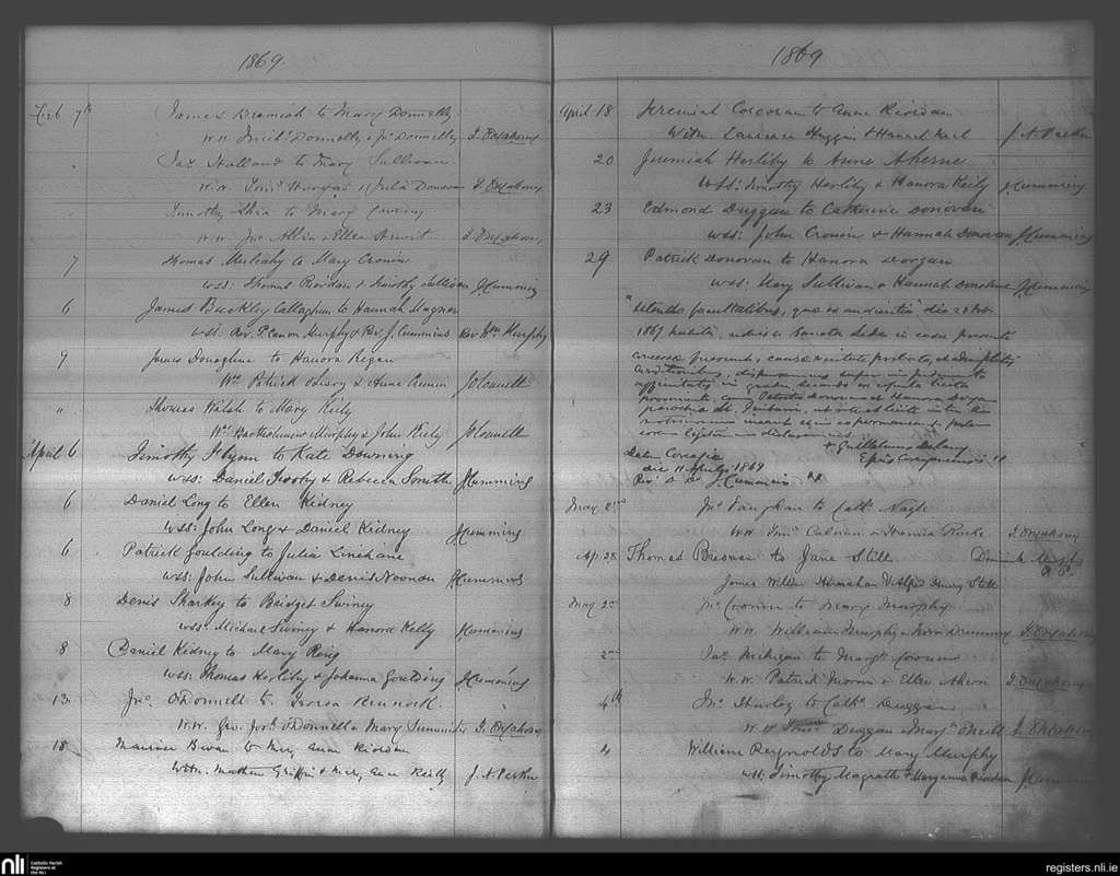 St. Finbarr's, Cork city; County of Cork; Diocese of Cork and Ross. Marriages, Feb. 1869 to May 1869