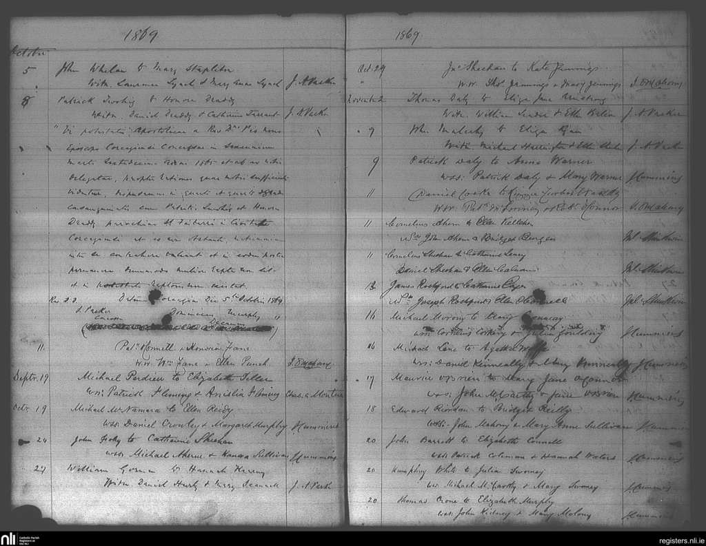 St. Finbarr's, Cork city; County of Cork; Diocese of Cork and Ross. Marriages, Sep. 1869 to Nov. 1869