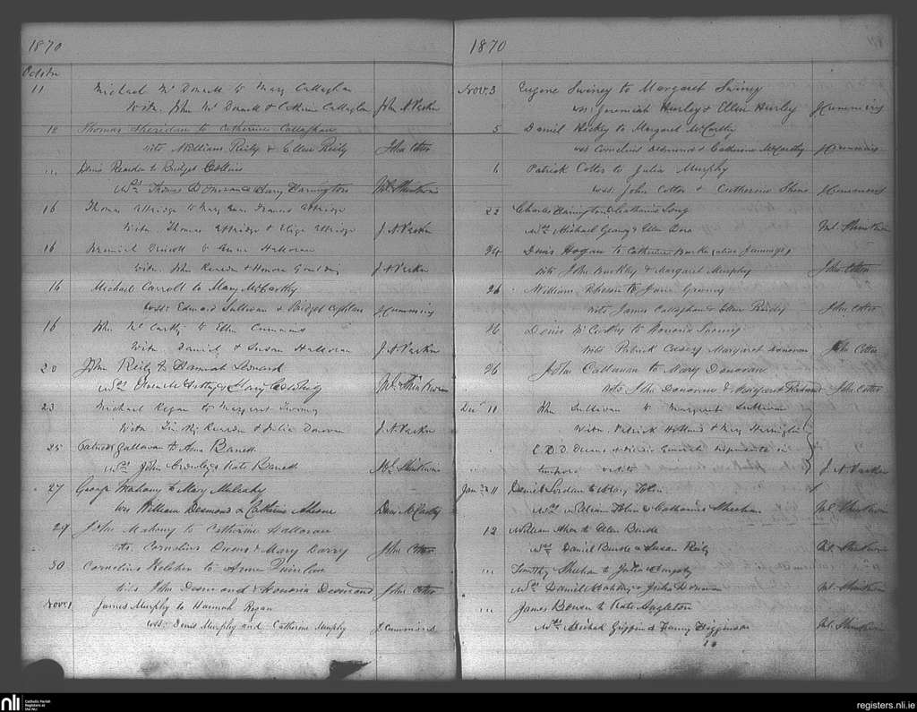 St. Finbarr's, Cork city; County of Cork; Diocese of Cork and Ross. Marriages, Oct. 1870 to Jan. 1871