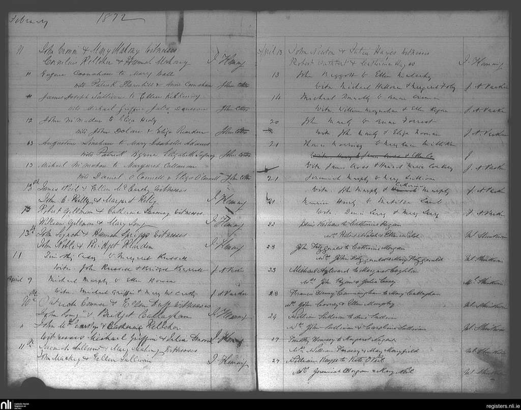 St. Finbarr's, Cork city; County of Cork; Diocese of Cork and Ross. Marriages, Feb. 1872 to Apr. 1872