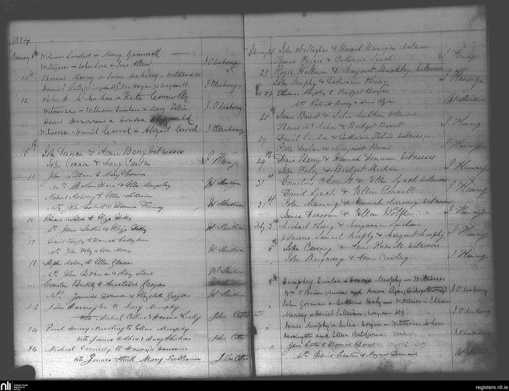St. Finbarr's, Cork city; County of Cork; Diocese of Cork and Ross. Marriages, Jan. 1874 to Feb. 1874