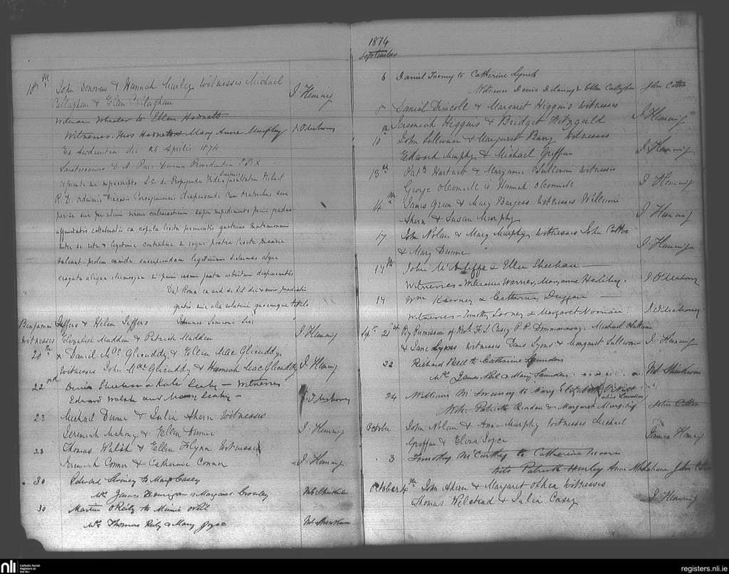 St. Finbarr's, Cork city; County of Cork; Diocese of Cork and Ross. Marriages, Aug. 1874 to Oct. 1874