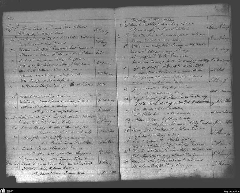 St. Finbarr's, Cork city; County of Cork; Diocese of Cork and Ross. Marriages, Nov. 1874 to Dec. 1874
