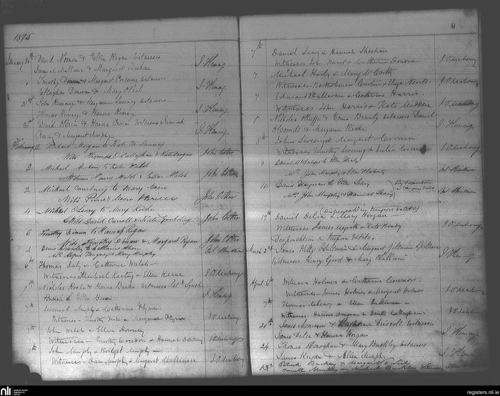 St. Finbarr's, Cork city; County of Cork; Diocese of Cork and Ross. Marriages, Jan. 1875 to Apr. 1875