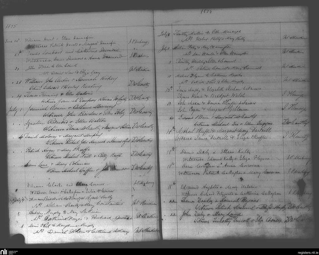 St. Finbarr's, Cork city; County of Cork; Diocese of Cork and Ross. Marriages, June 1875 to July 1875