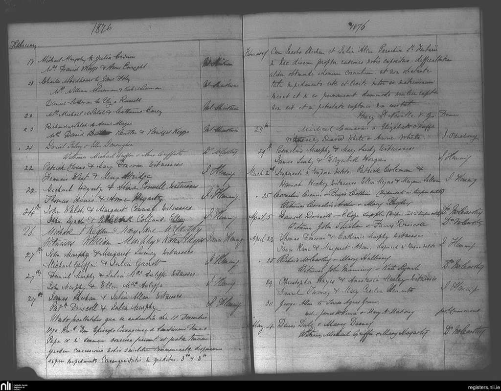 St. Finbarr's, Cork city; County of Cork; Diocese of Cork and Ross. Marriages, Feb. 1876 to May 1876