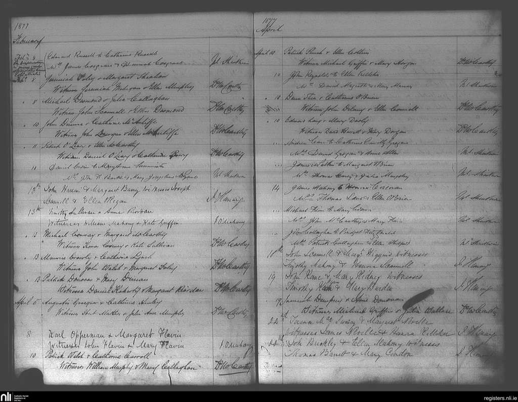 St. Finbarr's, Cork city; County of Cork; Diocese of Cork and Ross. Marriages, Feb. 1877 to Apr. 1877