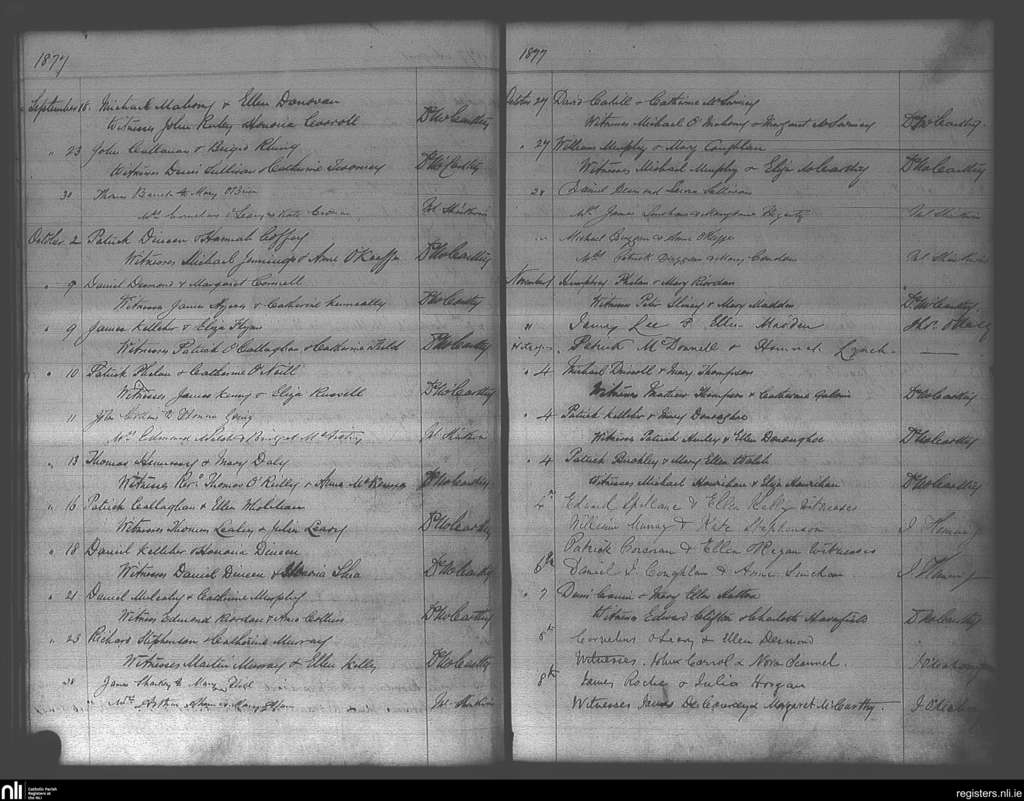 St. Finbarr's, Cork city; County of Cork; Diocese of Cork and Ross. Marriages, Sep. 1877 to Nov. 1877
