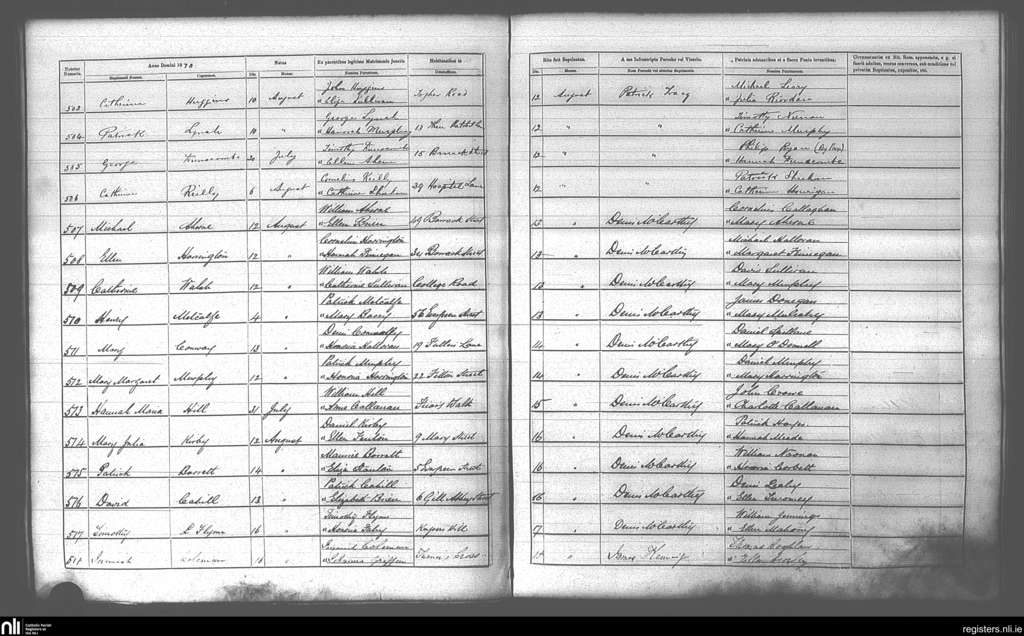 St. Finbarr's, Cork city; County of Cork; Diocese of Cork and Ross. Baptisms, Aug. 1878