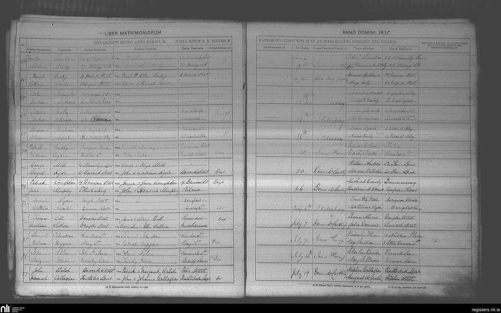 St. Finbarr's, Cork city; County of Cork; Diocese of Cork and Ross. Marriages, June 1878 to July 1878